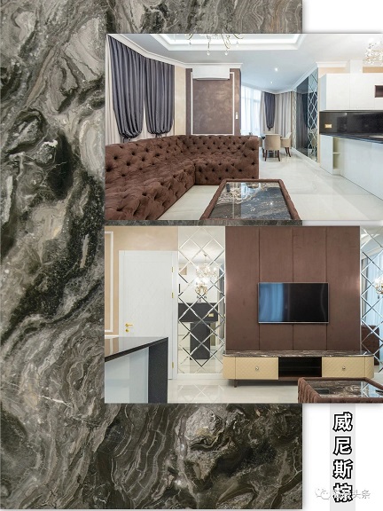 产自意大利,纹理流畅,颜色深重,黑灰相映,水城景观,气势如虹,静中有动,动中带静,使空间呈现动感之态,稳重感与神秘感兼具。
