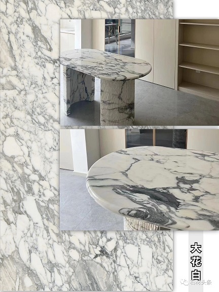 大花白是意大利进口大理石,其底色白而不腻,深浅交叉灰色网纹,自然流畅,分布错落而协调有致,既优雅又大气。