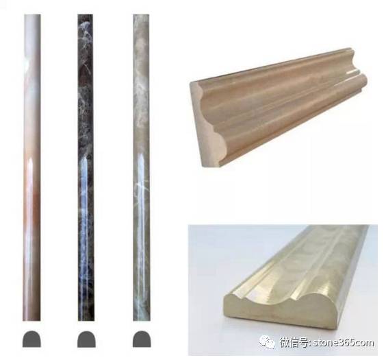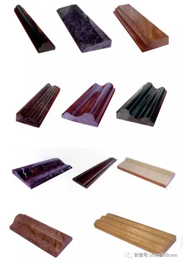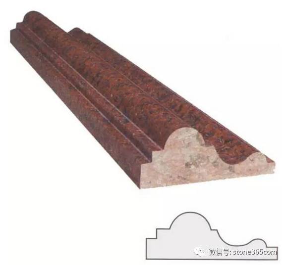 天然石材(异型)线条通常是用天然大理石、花岗石荒料加工成单件或多件组合拼接,形成整体的、连续的石材线条,主要用作为门框、窗框、扶手、台面、屋檐、建筑物转角、腰线、踢脚线等的边缘,以达到遮掩视觉效果不好的部位,或起修饰美化的目的。