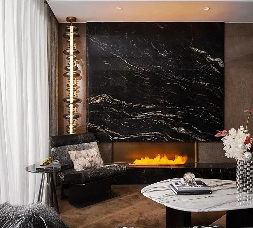 灰色大理石低调沉稳,用来做电视背景墙时,则可以极速的提高居家的空间质感,就像一幅独特天然的艺术作品,将成为整个客厅的视觉焦点。而搭配同系列的大理石来设计电视柜,将更现和谐大气。